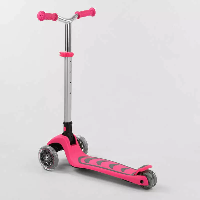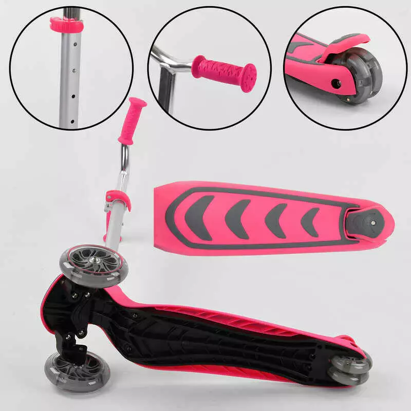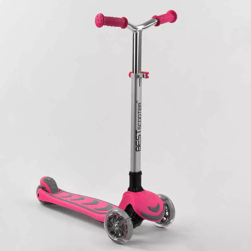 Самокат трехколесный Y-00211 (4) Best Scooter, РОЗОВЫЙ, складной алюминиевый руль, 4 колеса PU со светом, d=12 см