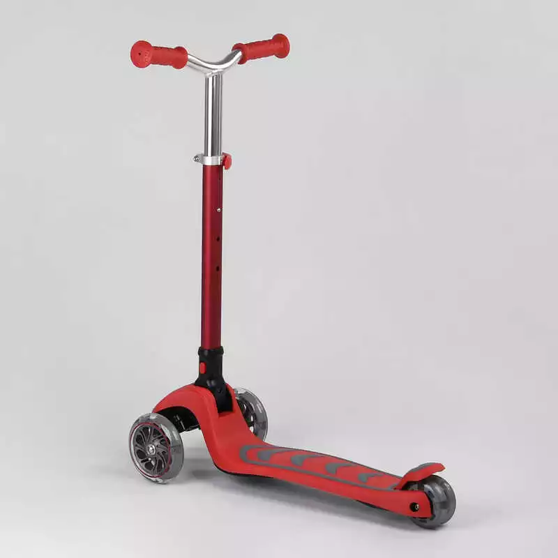 Самокат трехколесный Y-00325 (4) Best Scooter, КРАСНЫЙ, складной алюминиевый руль, 4 колеса PU со светом, d=12 см