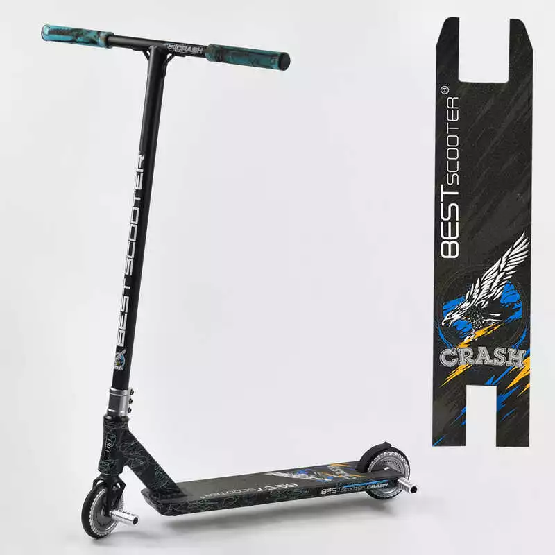 Самокат трюковый 37890 Best Scooter (4) "CRASH" HIC-система, ПЕГИ, алюминиевый диск и дека, колёса 110мм PU, ширина руля - 57 см, в коробке