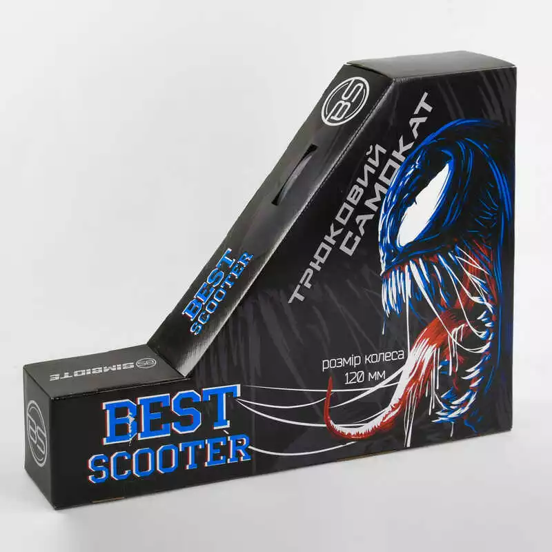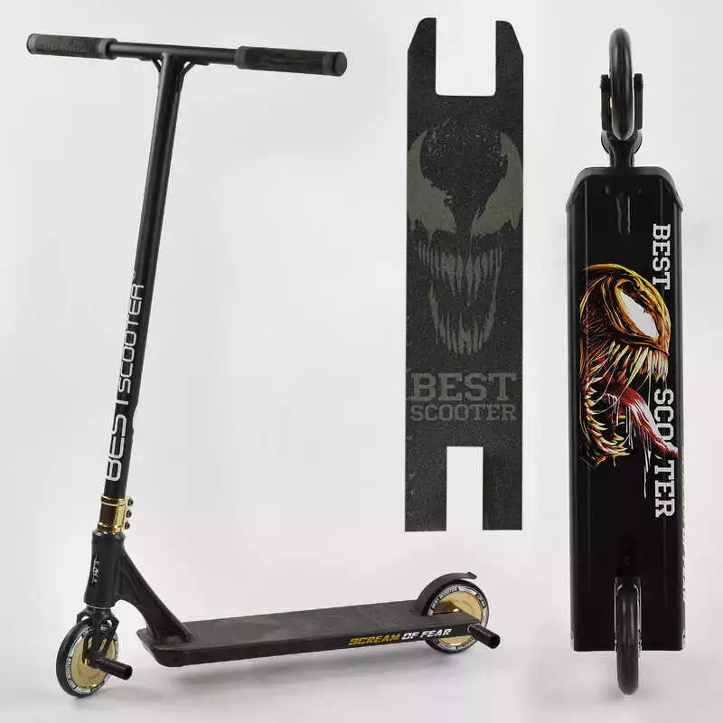 Самокат трюковый 71383 Best Scooter (4) "SIMBIOTE" HIC-система, ПЕГИ, алюминиевый диск и дека, колёса 120мм PU, ширина руля - 57 см, в коробке