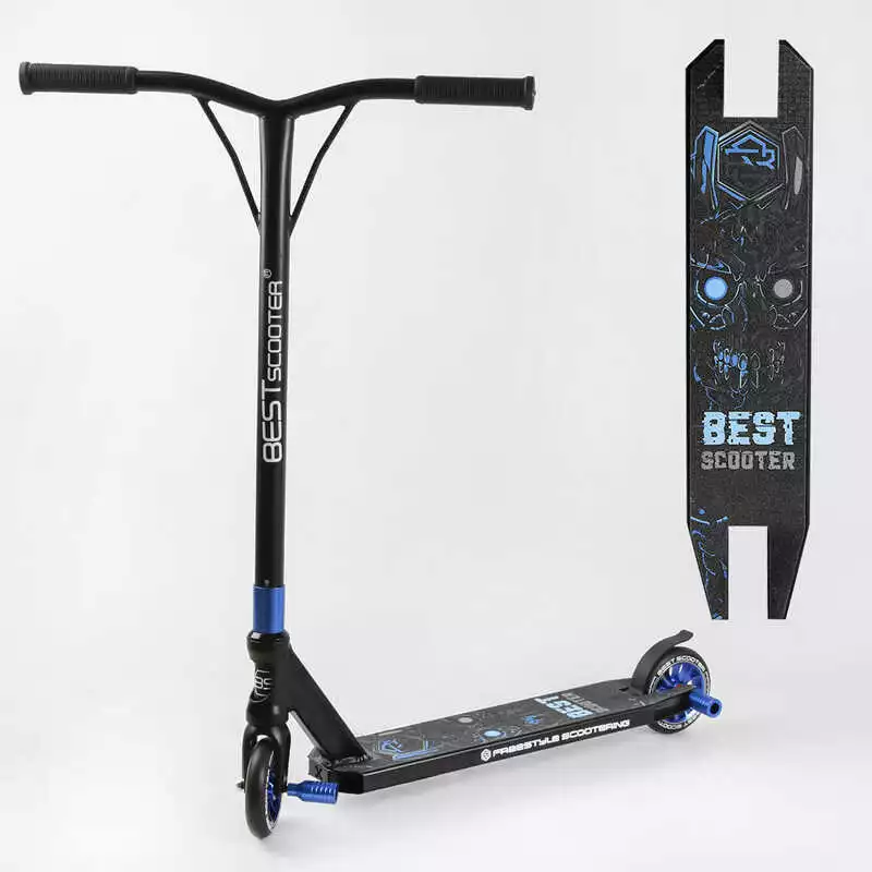 Самокат трюковый Best Scooter 54528 (1) HIC-система, ПЕГИ, алюминиевый диск и дека, колёса PU d-110мм, ширина руля-52см, высота - 83см, в коробке