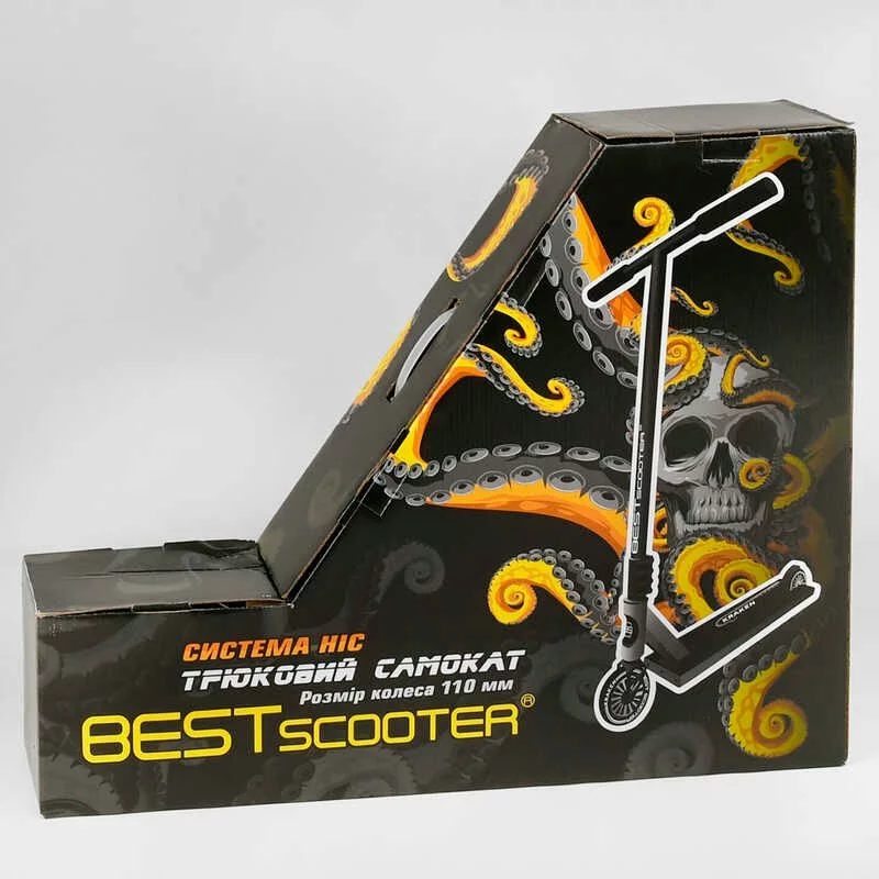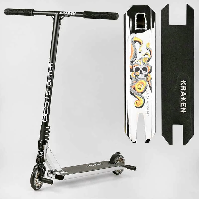 Самокат трюковый KR-82080 Best Scooter (4) "Kraken" HIC-система, ПЕГИ, алюминиевый диск и дека, АНОДИРОВАННЫЙ, колёса PU 110мм, ширина руля 58 см
