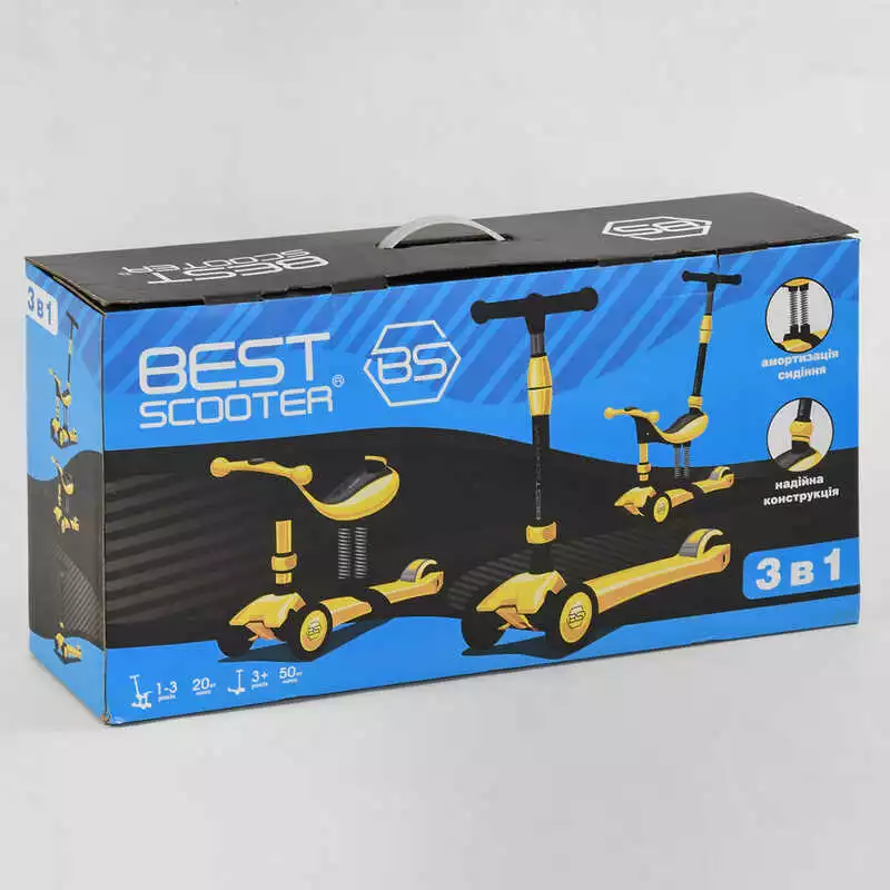 Самокат-велобег 3в1 трехколесный BS-23180 (4) Best Scooter, 3 колеса PU со светом, сидение, амортизаторы, родительская ручка
