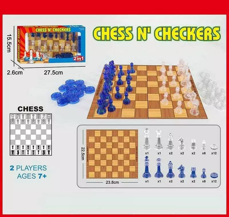 Шахи і шашки 8010 (144) 2в1, картонна дошка, 32 фігури для гри в шахи, 24 шашки, в коробці