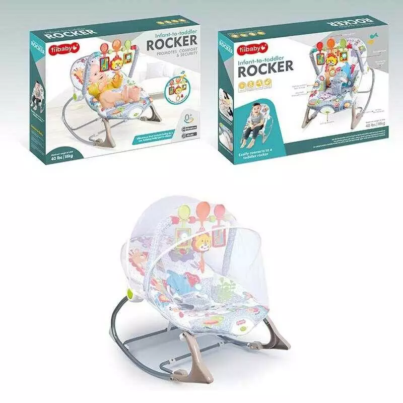Шезлонг 68157 (4) брязкальце з мелодіями, вібрація, регулювання положення, дуга з пальчиковими іграми, в коробці