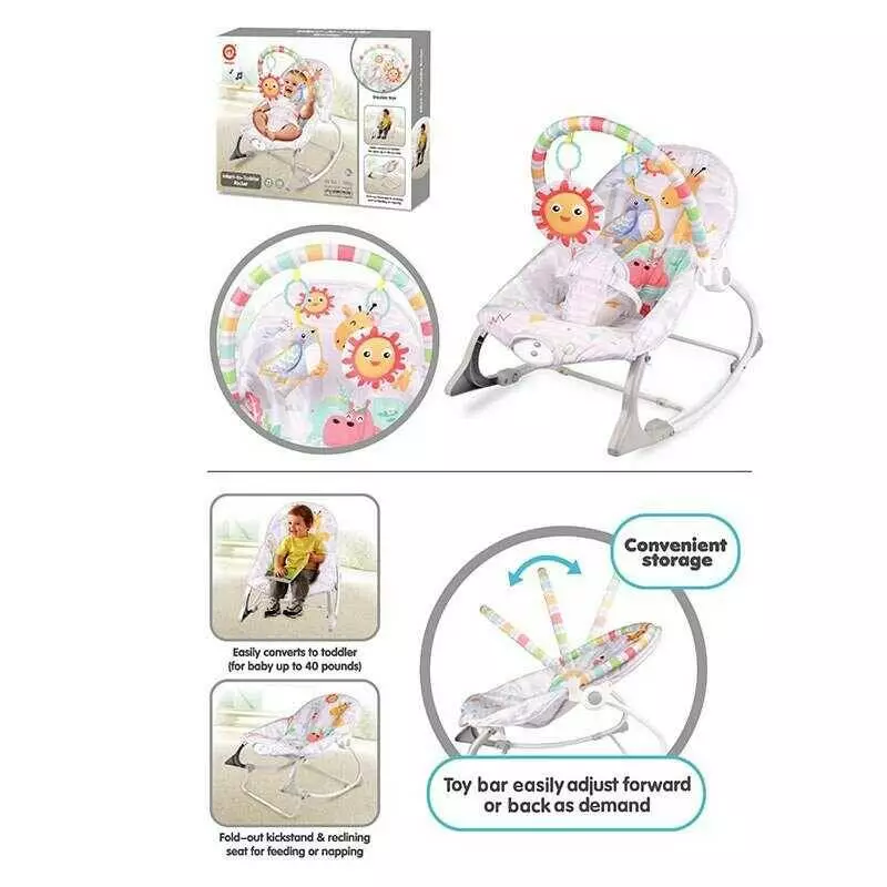 Шезлонг 898-942 (8) мелодії, вібрація, дуга з підвісками, регулювання гучності, на батарейках, регулювання положення, в коробці