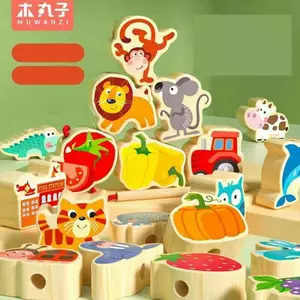 Шнурівка дерев`яна С 74473 (40) 4 шнурівки, фігурки, англійська абетка, цифри, мішечок, в коробці