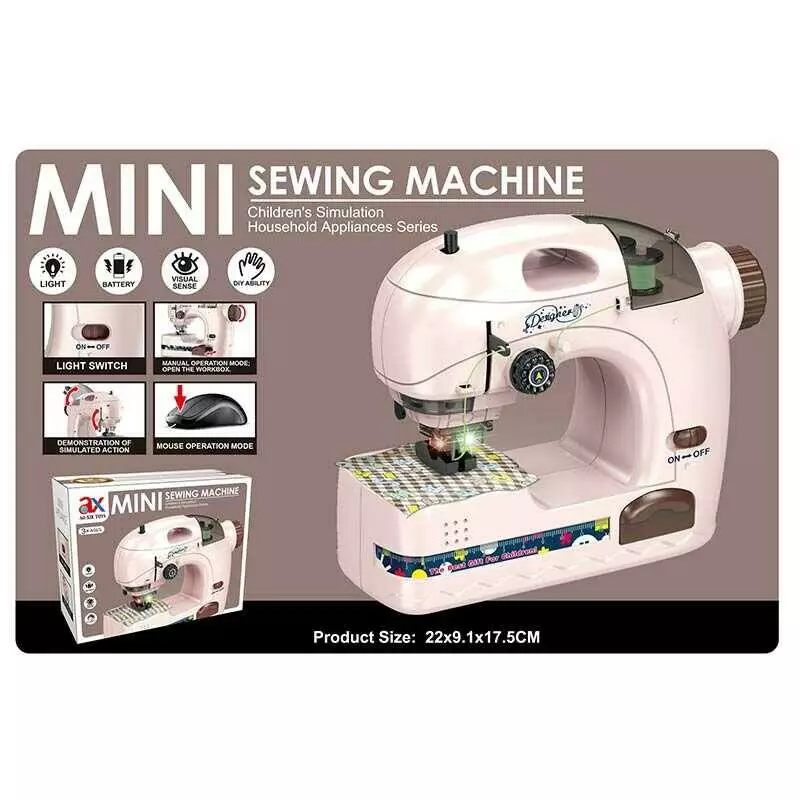 Швейна машинка 6783 A (84/2) на батарейках, імітація шиття, підсвічування, нитки, тканина, інструкція, в коробці
