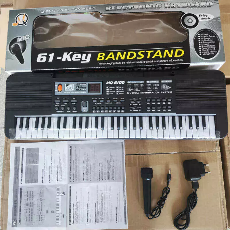 Синтезатор MQ 6100 Штрихкод=97053 (36) 61 клавіша, мікрофон, регулювання гучності, дисплей, мелодії, працює від мережі та батарейок, в коробці