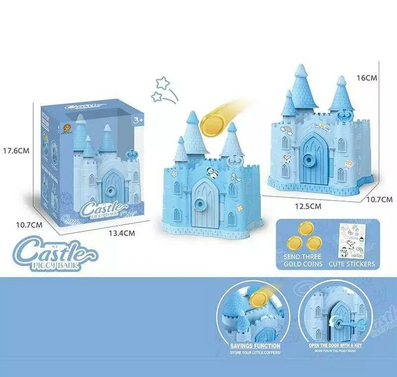Скарбничка ZH 998-64 (120/2) "Замок", зачиняється на ключик, 3 монетки, наліпки, в коробці