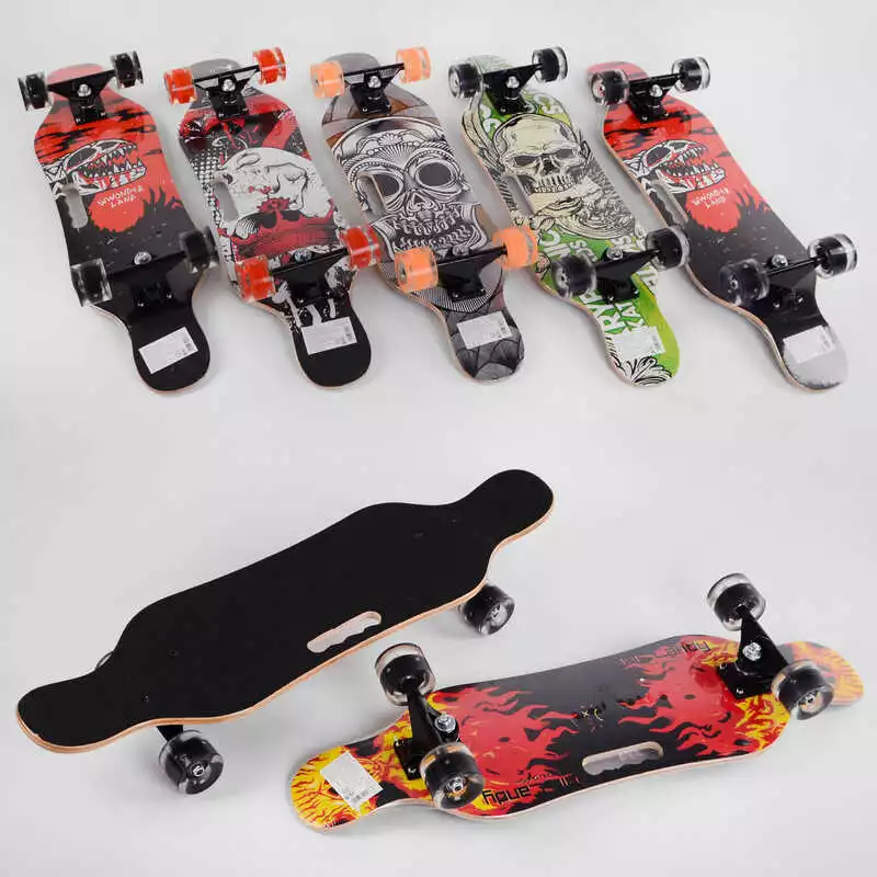 Скейт С 32024 (6) 6 видов, колеса СВЕТЯЩИЕСЯ PU d=6см, 6 слоев канадского клена, подшипники ABEC-9, дека с ручкой