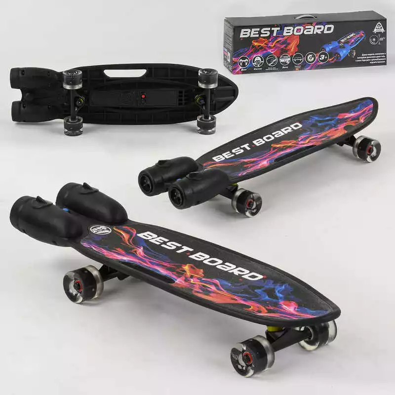 Скейтборд S-00501 Best Board (4) с музыкой и дымом, USB зарядка, аккумуляторные батарейки, колеса PU со светом 60х45мм