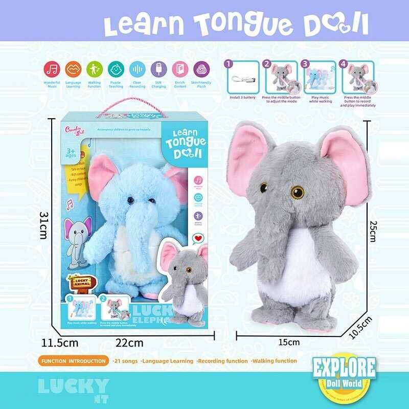 Інтерактивна тваринка 18811-1 (24) "Слоник", акумулятор 3.7 V, кабель USB-Type C, пісні, запис голосу, ходить, в коробці