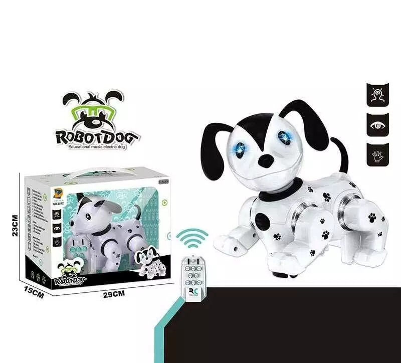 Песик на радіокеруванні 9872 (30) колесо вільного руху, від батарейок, підсвічування, музика, пісні та історії англ. мовою, пульт, танцює, в коробці