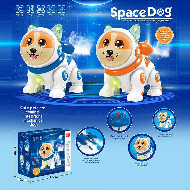 Собачка QF 378-1 (72/2) 2 кольори, мелодія, диско-куля, підсвічування, парогенератор, ходить, в коробці