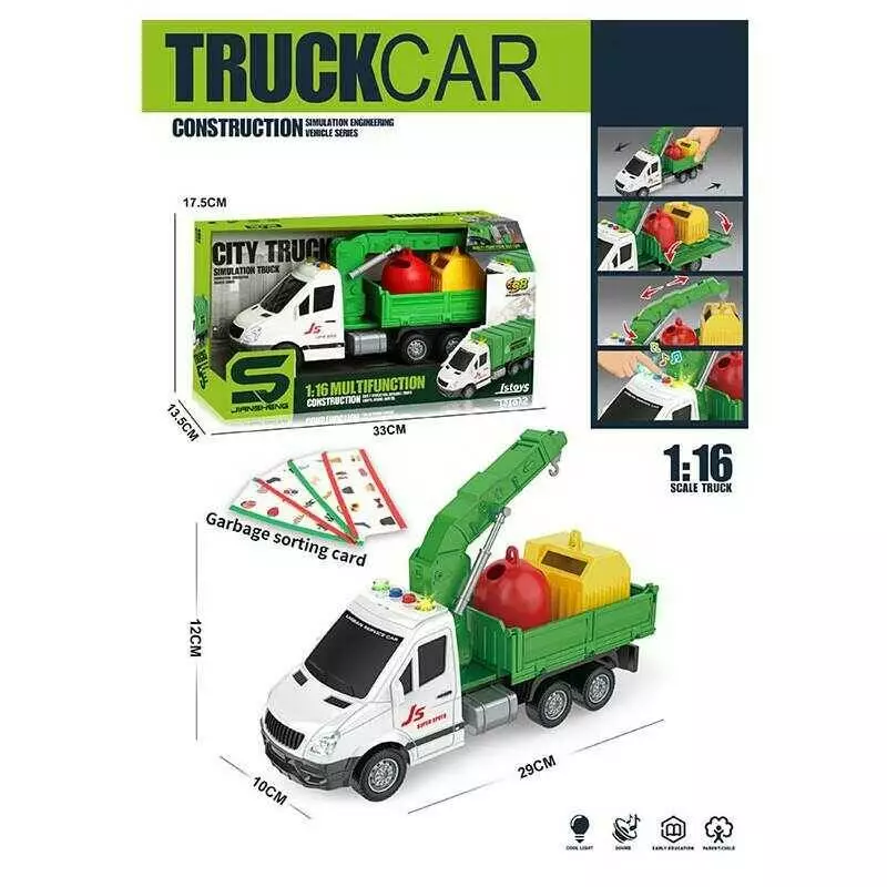Спецтехніка JS 143 / 143 A (36/2) "Контейнеровоз ", 2 види, світло, звук, інерційний механізм, рухливий кузов, додаткові аксесуари, в коробці