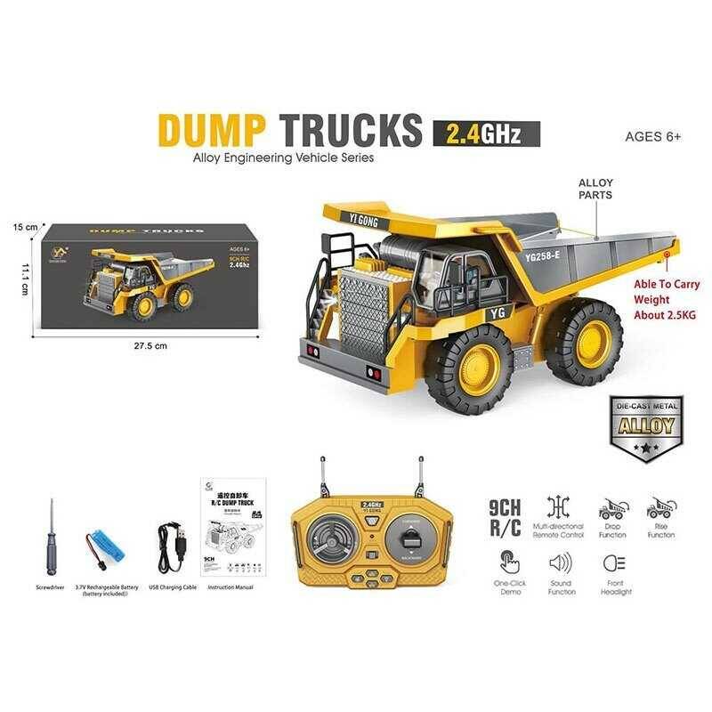 Спецтехніка на радіокеруванні BC 1047 (24) "Самоскид", металопластик, перевертає кузов, звук, світло, акумулятор 3.7 V, пульт 2.4 GHz, в коробці