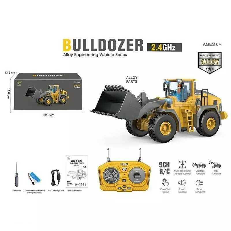 Спецтехніка на радіокеруванні BC 1057 (24/2) "Бульдозер", металопластик, звук, підіймання ковша, світло фар, акум. 3.7 V, пульт 2.4 GHz, в коробці