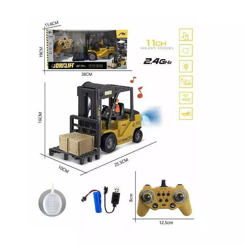 Спецтехніка на радіокеруванні QH 207-1 (24)“Навантажувач”,парогенерація,звуки, світло, акум. 3.7V,фігурка,пульт 2.4GHz,автоматичний підіймач,в коробці