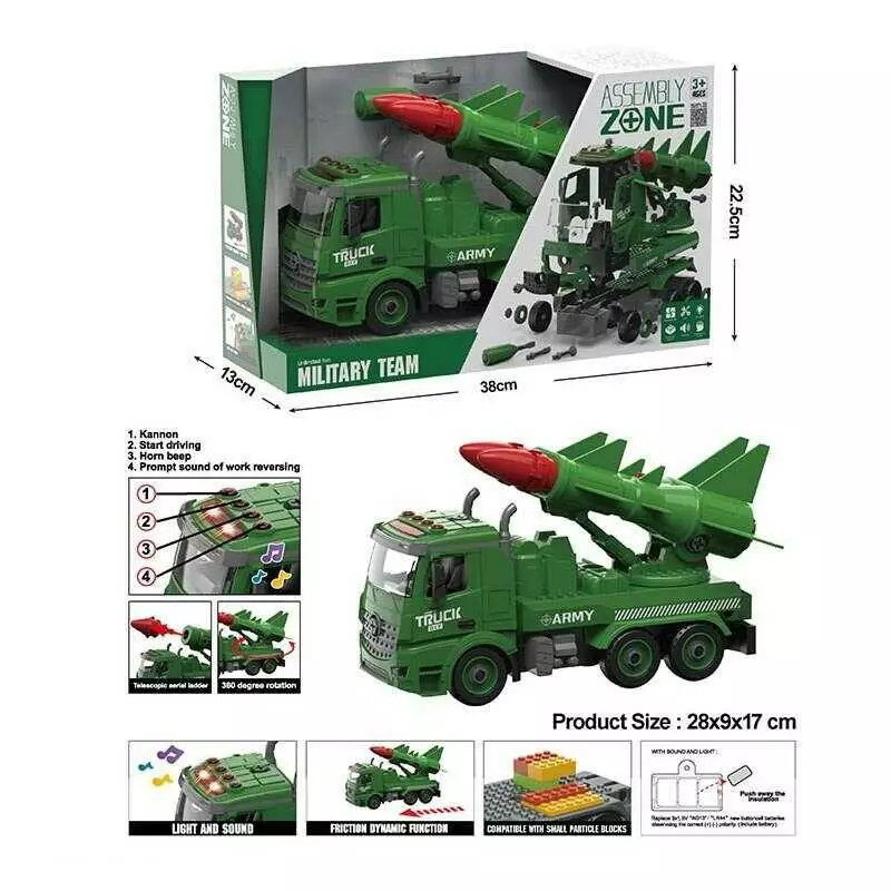 Спецтехніка YW 9091 C (24/2) військова машина, світло, звук, механіч., обертання платформи по колу, інерція, телескопічна ракетна установка, в коробці