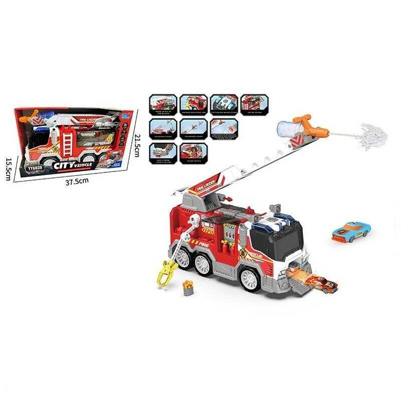 Спецтехніка YY 6039 (8) “Пожежна служба”, світло, звук, інерція, пожежні атрибути, механічний запускач, стріляє водою, висувна стріла, в коробці