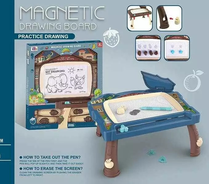 Столик для малювання CJ 6011-1 PM (48/2) 2 кольори, магнітна дошка, 6 штампів, в коробці, ВИДАЄТЬСЯ МІКС ВИДІВ