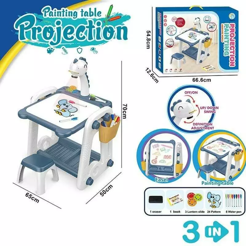 Столик ігровий з проєктором YM 59 (6) підсвічування, звук, маркери, губка, 3 диски, стільчик, дошка для малювання, в коробці