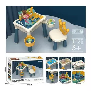 Столик з конструктором 8008 (6) 106 елементів, стіл 77х53х45 см, стілець, дошка для малювання, в коробці