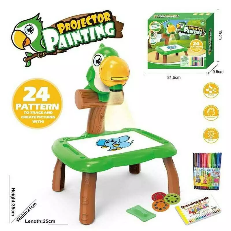 Столик з проєктором 321 (64) “Папуга”, звук, підсвічування, 3 диски, 12 маркерів, альбом для малювання, в коробці