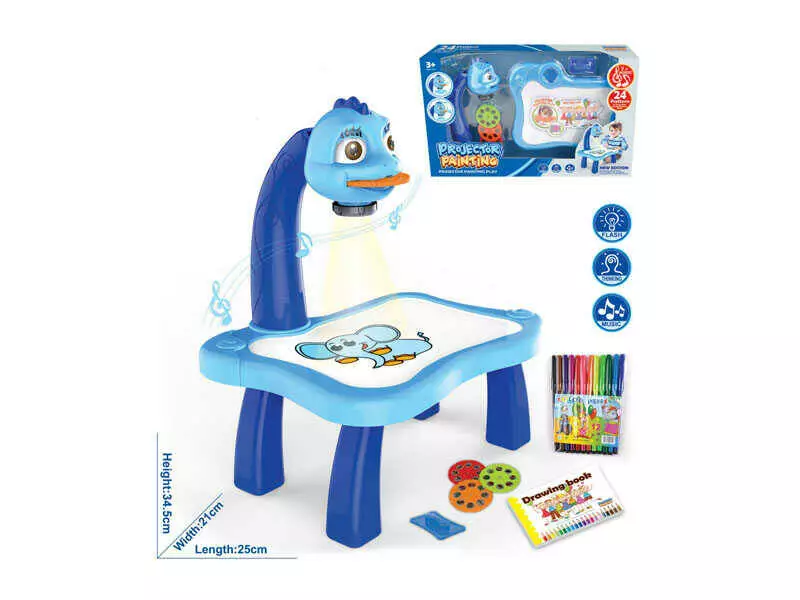Столик з проєктором для малювання YM 6556 (24/2) підсвічування, мелодія, проєктор, 3 диски з картинками, фломастери 12 штук, в коробці