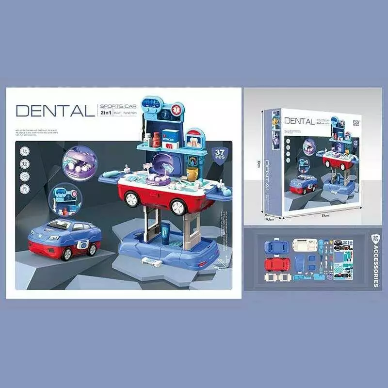 Набір стоматолога 8044 (16) 37 деталей, іграшка 2 в 1: машинка та мобільна стоматологічна станція, муляжі щелеп та зубів, у коробці