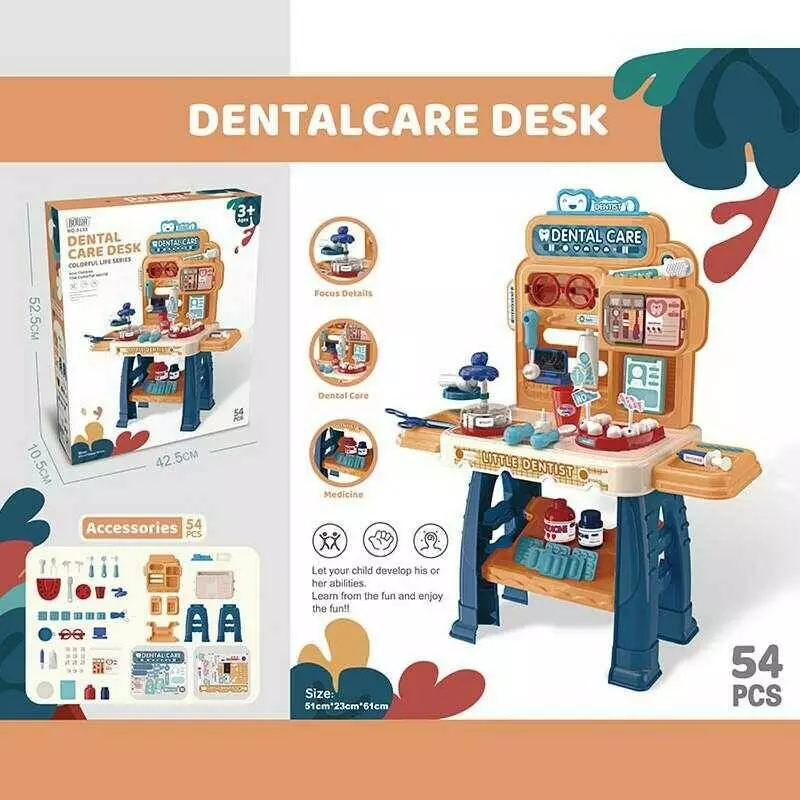 Набір стоматолога 8133 (8) 54 елементи, медич. стіл, муляжі щелеп та зубів, інструменти стоматолога, рухомі деталі, аксесуари, наліпки, в коробці