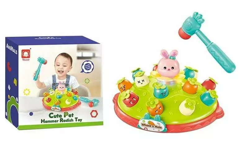 Стукалка 841 (36/2) підсвічування, пісенька англійською, молоточок, кролик, морква, на батарейках, в коробці