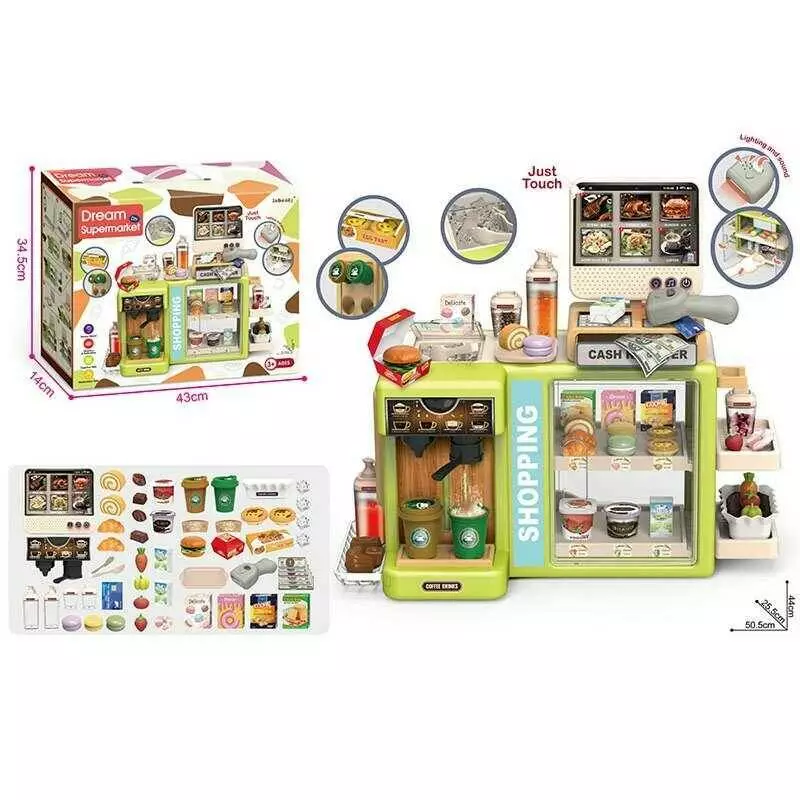 Супермаркет 1101-1 (12) звук, музика, озвучення англійською мовою, підсвічування, каса, сканер, кавомашина, шафа, імітація грошей, аксесуари, в коробц