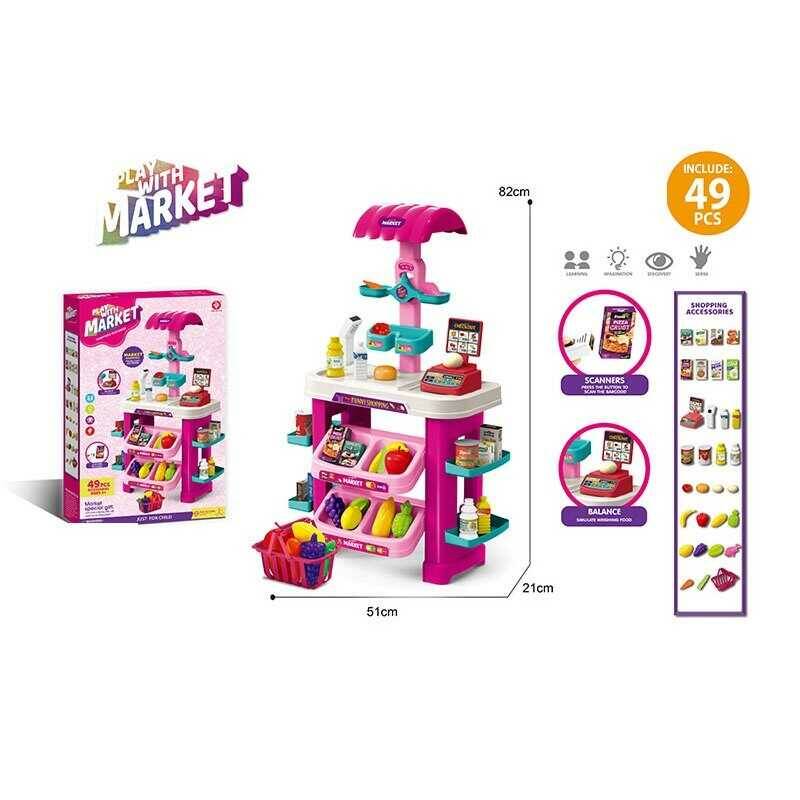 Супермаркет 922-191 (8) 49 елементів, висота: 82 см, сканер, підсвічування, звук, ваги, полички, харчові продукти, продуктовий кошик, в коробці