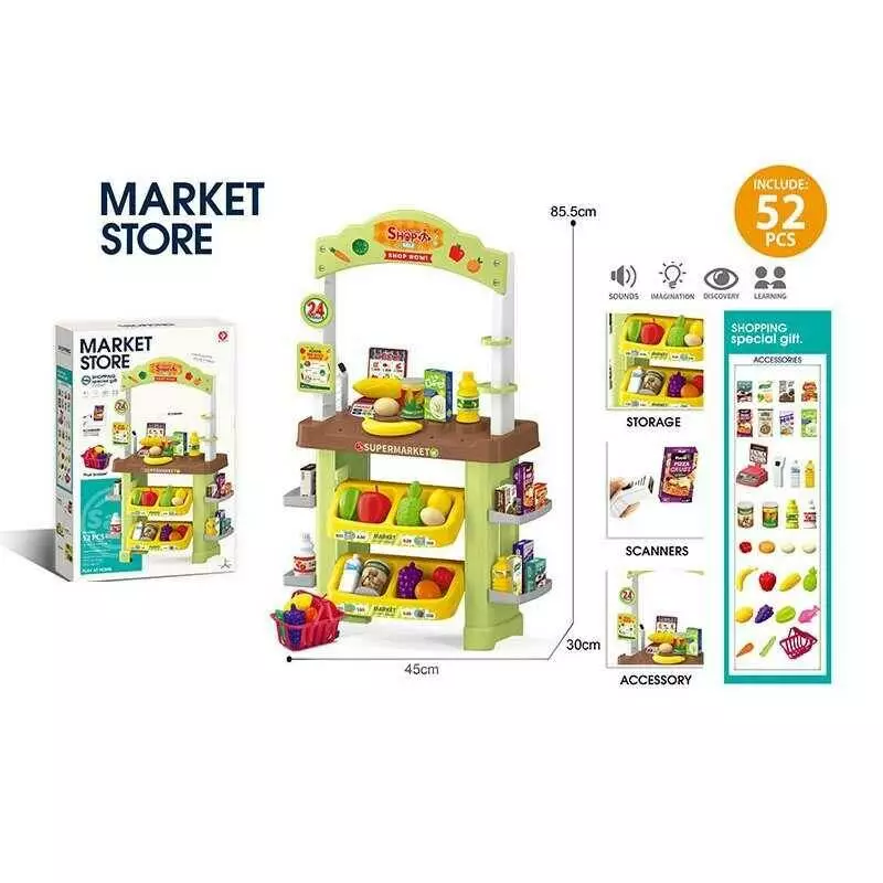 Супермаркет 922-206 (8) 52 елементи, висота: 85.5 см, сканер, підсвічування, звук, полички, харчові продукти, продуктовий кошик, в коробці