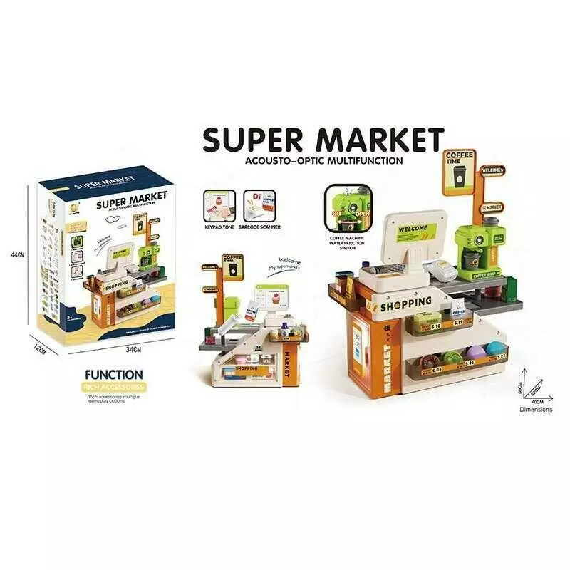 Супермаркет 929 (18/2) на батарейках, звук, підсвічування, сканер, каса, кавомашина, продукти, наліпки, в коробці