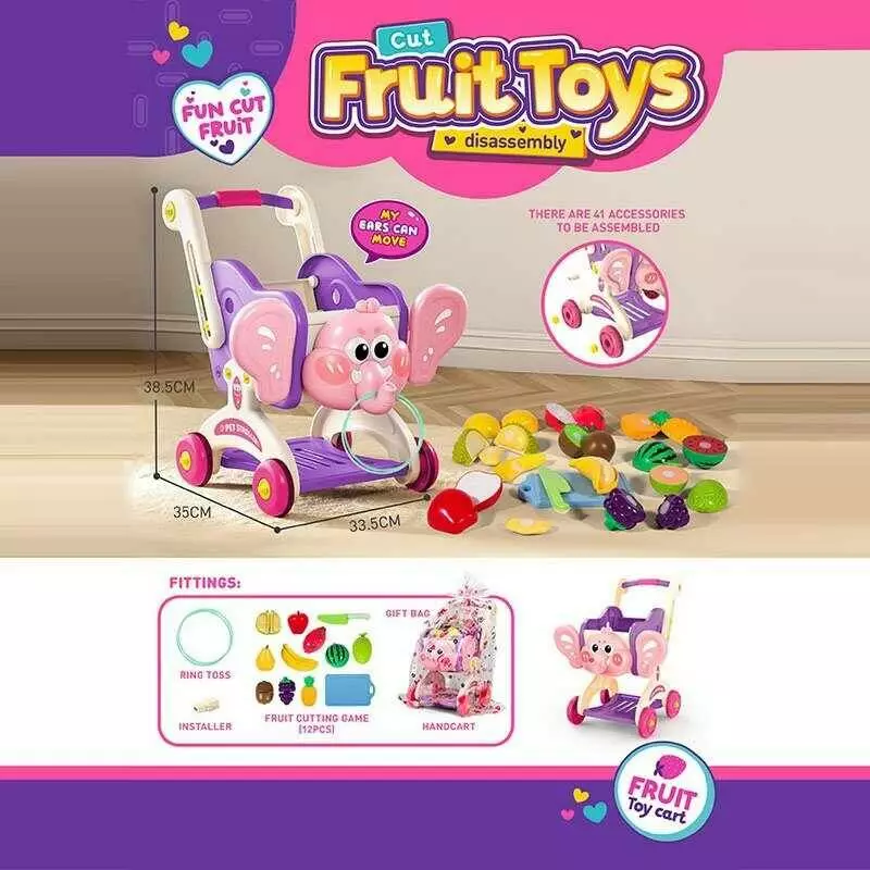 Візок з фруктами KK 111 ШТРИХ=400013 (8) розмір: 33.5х35х38.5 см, фрукти на липучках, дошка, ніж, в пакеті
