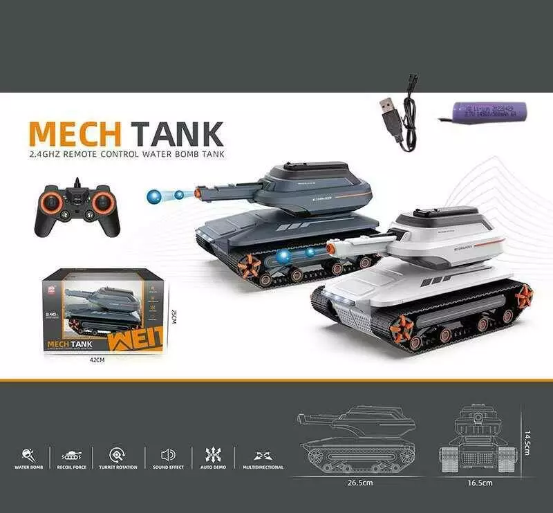 Танк на радіокеруванні 6615 A (12) 2 кольори, стріляє орбізами, гусеничний хід, звуки, підсвіч, акум. 3,7 V, пульт 2,4 G, обертається башта, в коробці