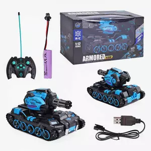 Танк на радіокеруванні 999 D-3 (24) підсвічування, акумулятор 3.7 V, пульт 49 MHz, стріляє орбізами, орбізи, дріт для підзаряджання, в коробці