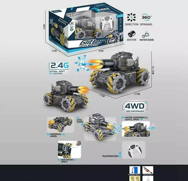 Танк на радіокеруванні CXL 800-102 A3 (12/2) акум. 7.4V, пульт 2.4G, USB-кабель, підсвічування, парогенерація, стріляє орбізами, музика, в коробці