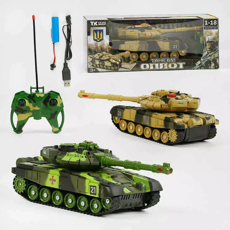 Танк на радіокеруванні "Оплот" 72942 (24) 2 кольори, "TK Group", масштаб 1:18, підсвічування, звуки, мех. рух башти, гусеничний, акум. 3,7V, в коробці