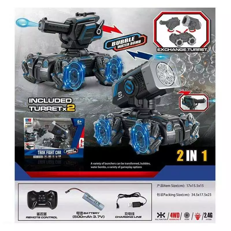 Танк на радіокеруванні UD 2801 A (24) на акумуляторі, підсвітка, стріляє орбізами, музика, USB кабель, пульт 2,4 GHz, випускає мильні бульб, в коробці