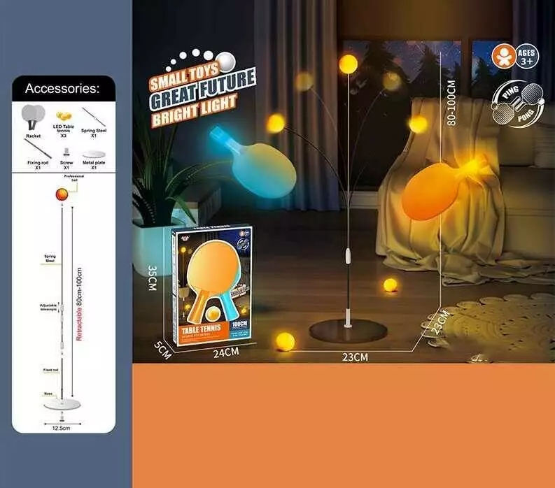 Теніс 777-531 D (36) 2 ракетки із підсвічуваними ручками, 3 кульки зі світлом, максимальна висота стійки 100 см, металева основа, в коробці