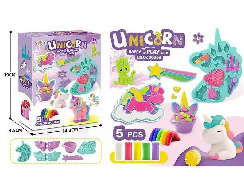 Тісто для ліплення 5836 C (96/2) “Єдиноріжка”, 5 кольорів, формочки, ножичок, форма для кексу, в коробці