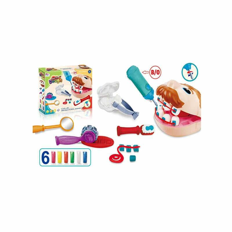 Тісто для ліплення 666-105 (48/2) “Дантист”, голова, бормашина обертається, форма для ліплення зубів, інструменти, 8 брусків тіста, в коробці