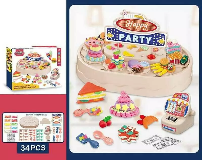 Тісто для ліплення 8639 (24/2) столик, що обертається, 10 кольорів тіста, форми, інструменти, наліпки, касовий апарат, в коробці