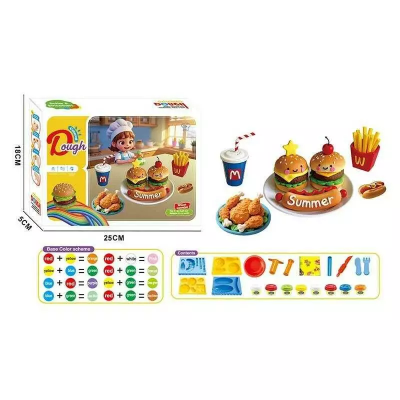 Тісто для ліплення 9015 (72/2) екструдер, 8 кольорів тіста, 4 фігурні форми, тарілочка, 2 ножі, виделка, в коробці