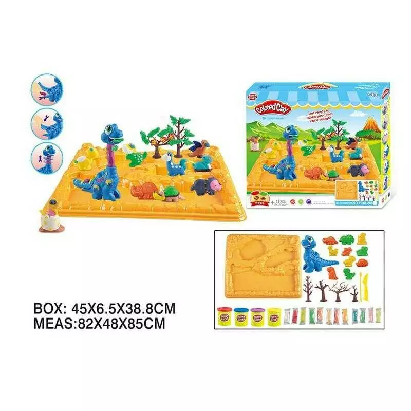 Тісто для ліплення F 018-204 (24/2) "Динозаври", 4 кольори тіста, форми, молди, динозавр з екструдером, інструменти, в коробці