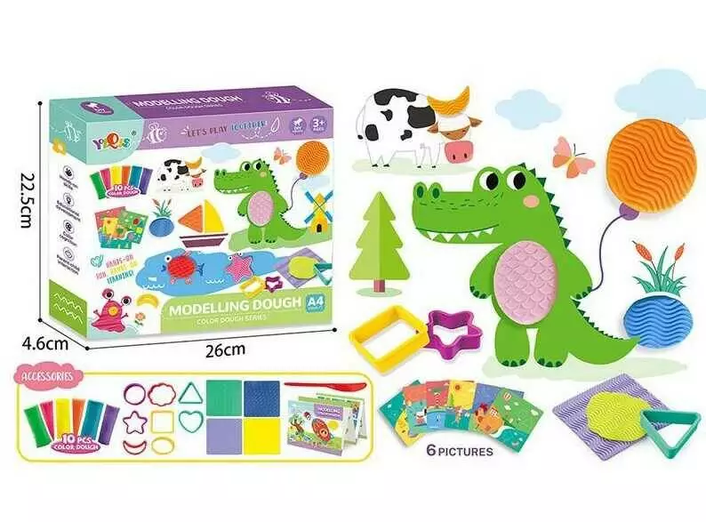Тісто для ліплення K 508 (48) 6 карток 22х17 см, формочки, кольорове тісто: 10 штук, ножичок, в коробці
